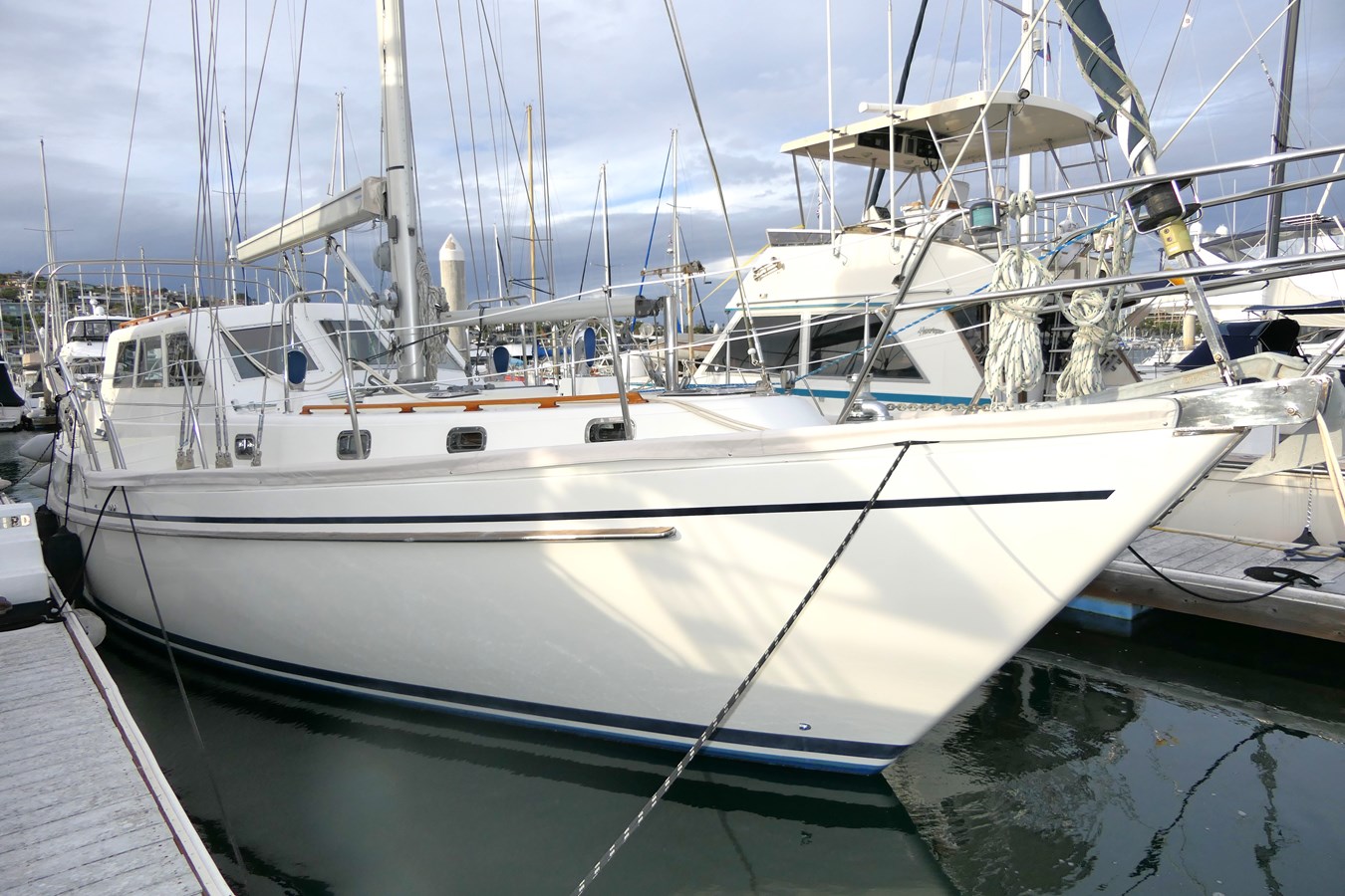 SUN BIRD is a one-owner, incredibly well-maintained yacht. She is nicely upgraded with items such as Furlboom, electric halyard winch and electric primary winches for ease of sailing. From 2002 thru 2005 the vessel had been used as the dealer demo vessel and she was fully commissioned in late 2005 when purchased by the current owner. The large enclosed pilothouse with inside helm and large windows provides excellent 360-degree visibility and is ideal for all-weather sailing.